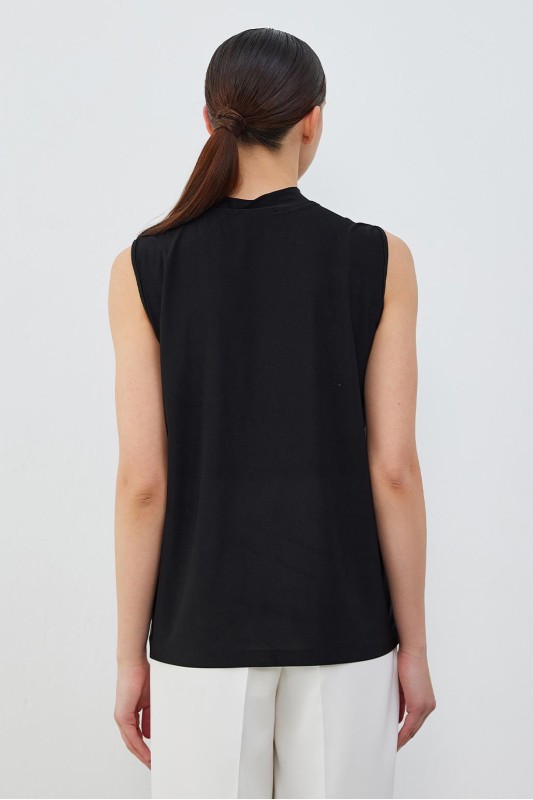 İpek Örme Teva Kolsuz İç Bluz Siyah