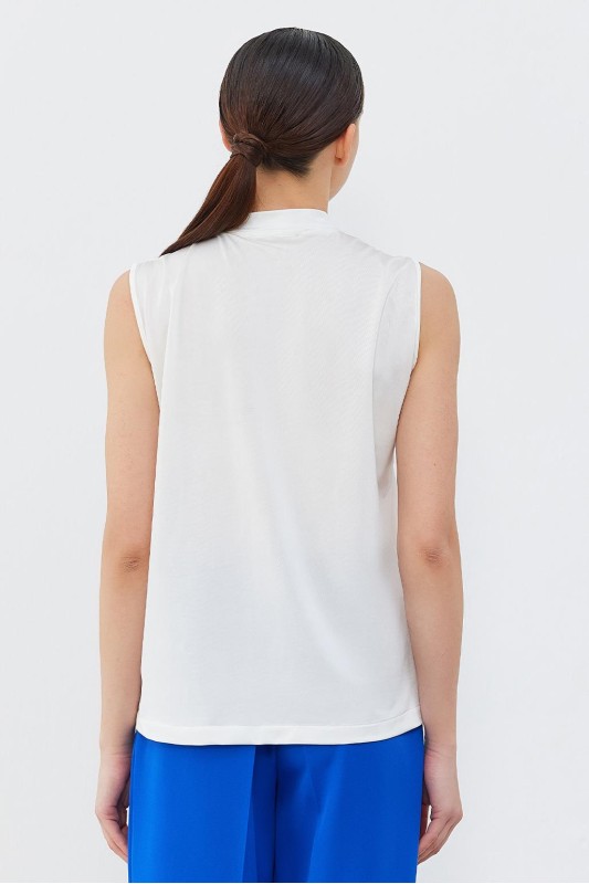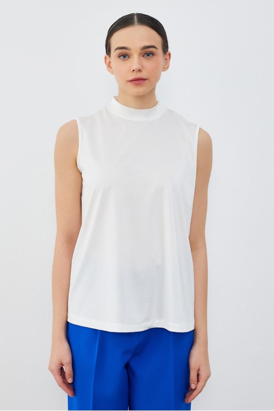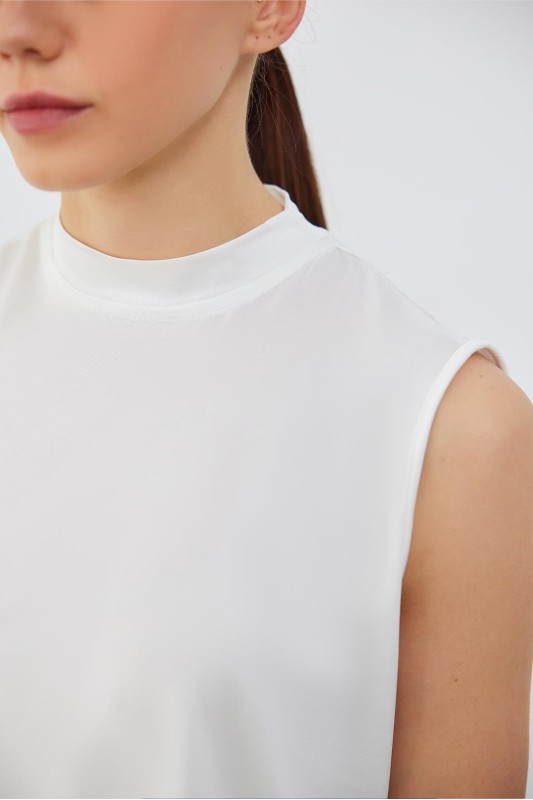 İpek Örme Teva Kolsuz İç Bluz Ekru