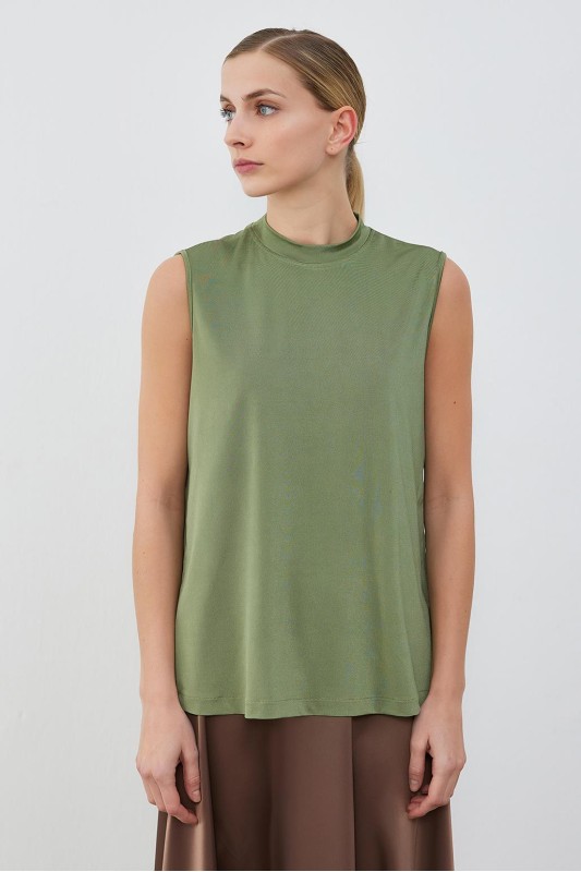 İpek Örme Teva Kolsuz İç Bluz Haki Yeşil