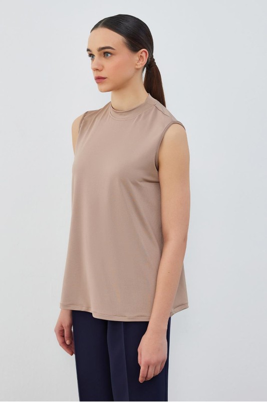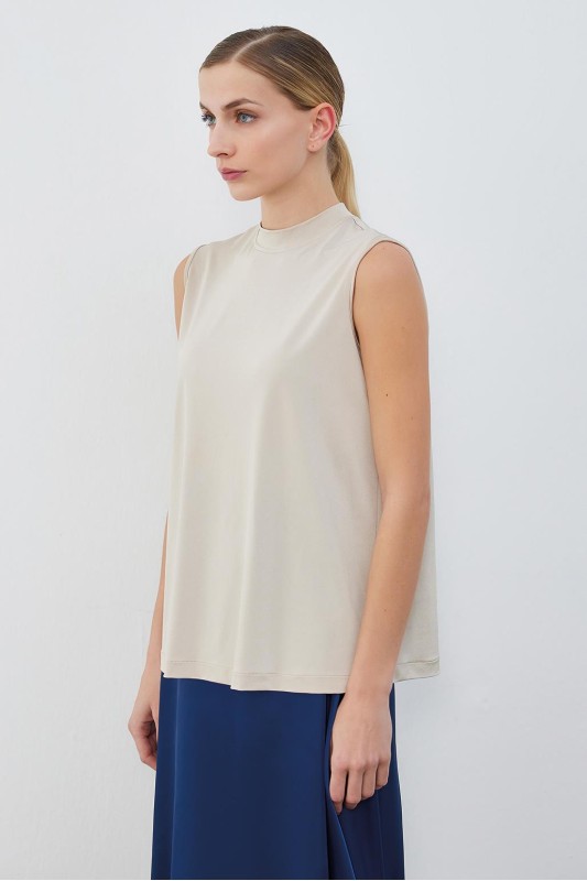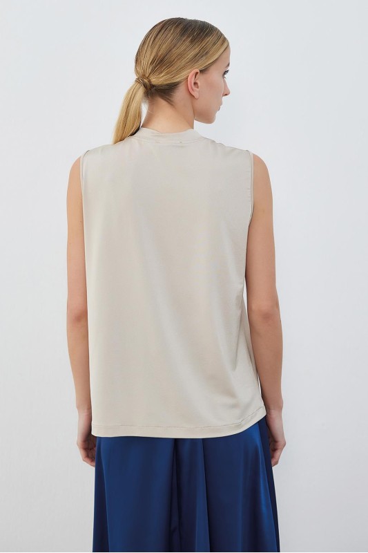 İpek Örme Teva Kolsuz İç Bluz Bej