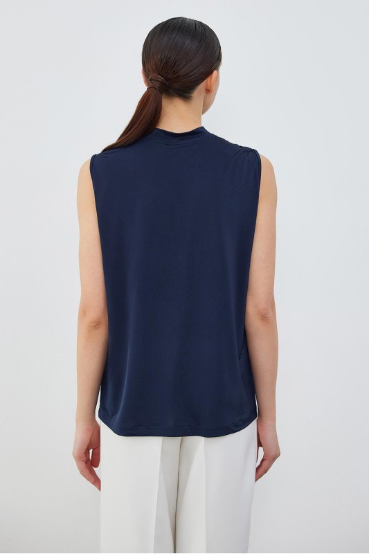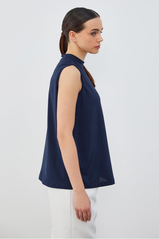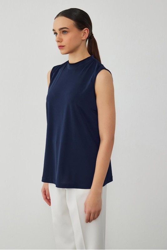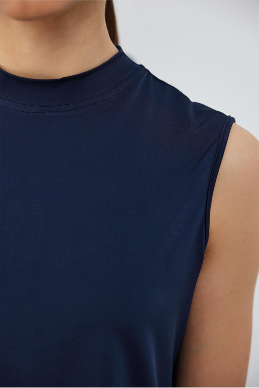 İpek Örme Teva Kolsuz İç Bluz Lacivert