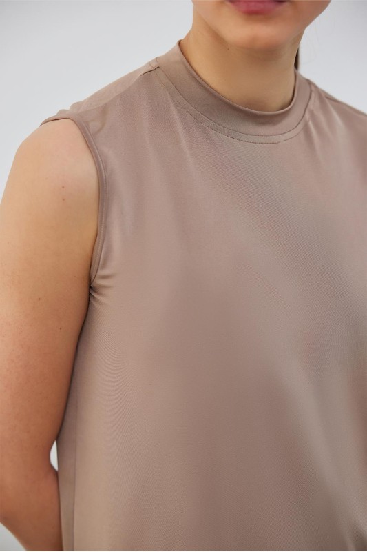 İpek Örme Teva Kolsuz İç Bluz Açık Kahve
