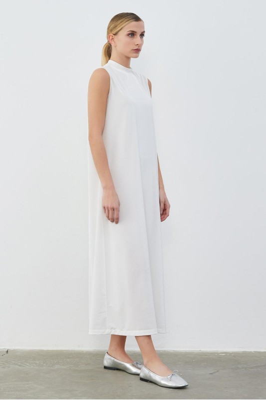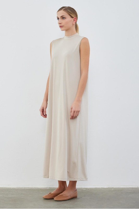 İpek Örme Kolsuz Elbise Ekru