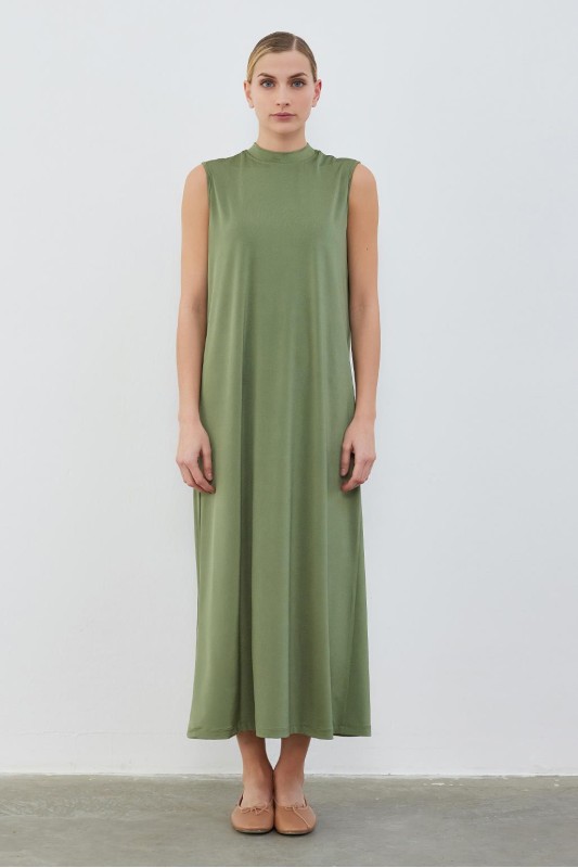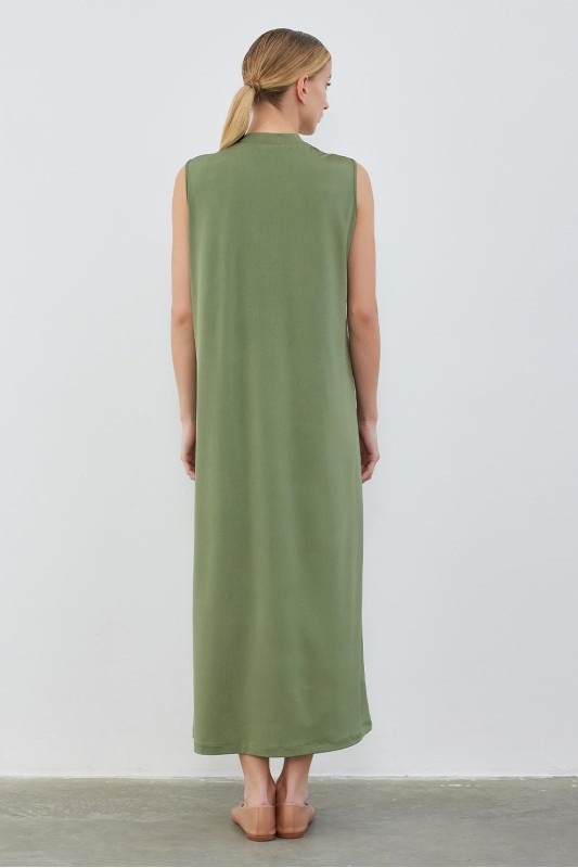 İpek Örme Kolsuz Elbise Haki Yeşil