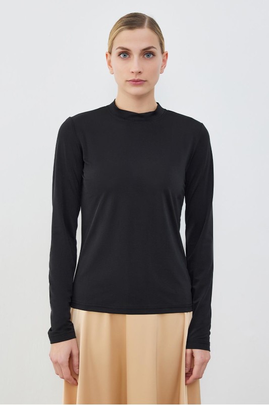 İpek Örme Uzun Kollu Bluz Siyah