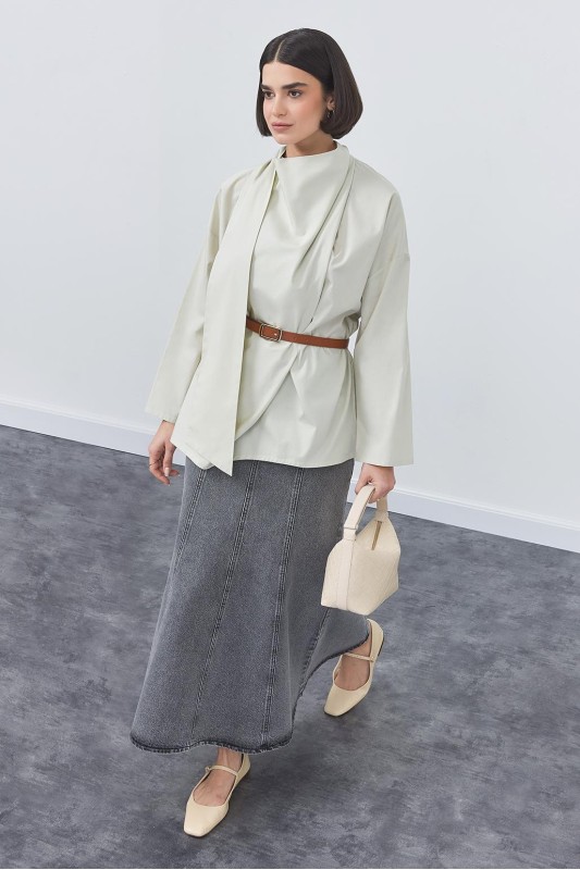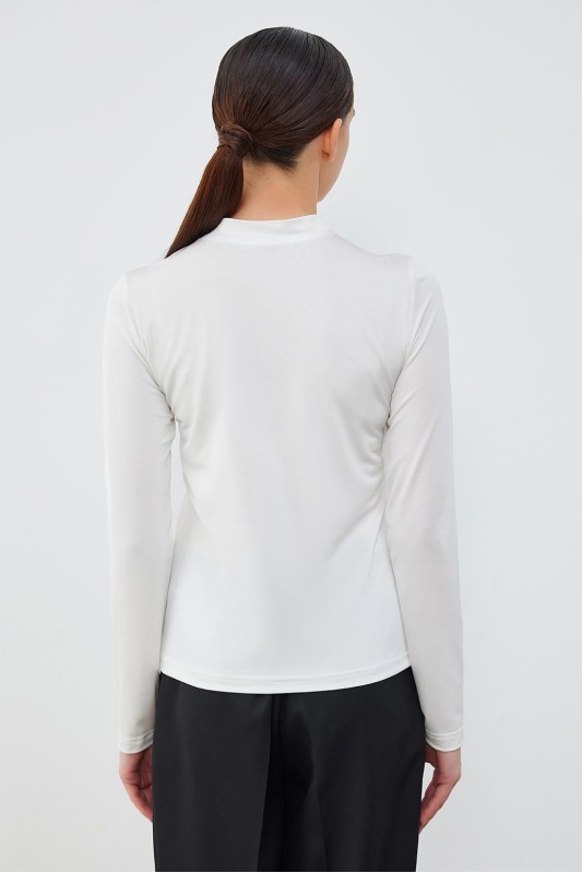 İpek Örme Uzun Kollu Bluz Ekru