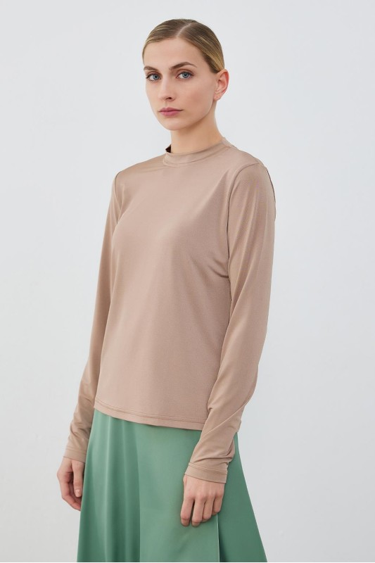 İpek Örme Uzun Kollu Bluz Bej