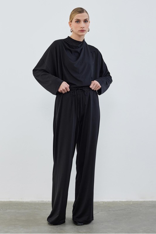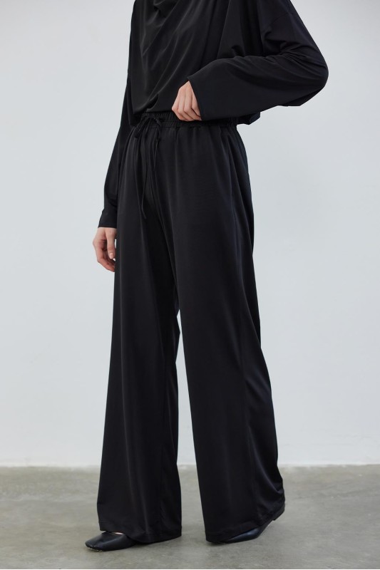 İpek Örme Extra Bol Pantolon Siyah