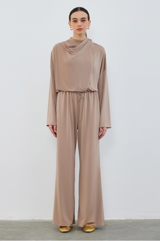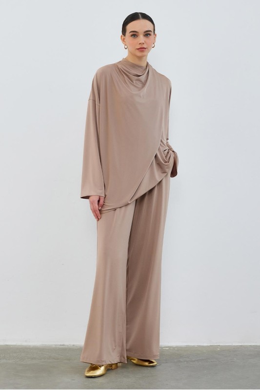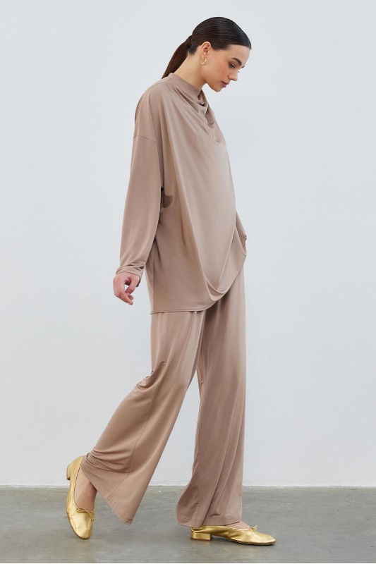 İpek Örme Extra Bol Pantolon Vizon
