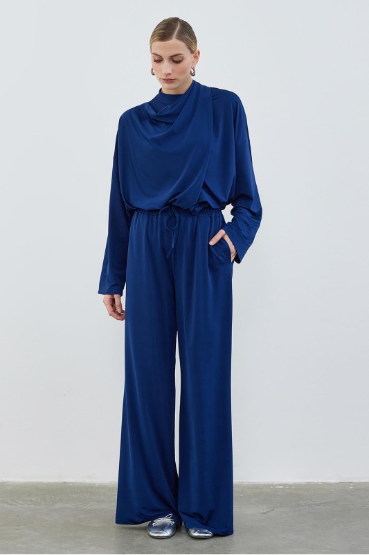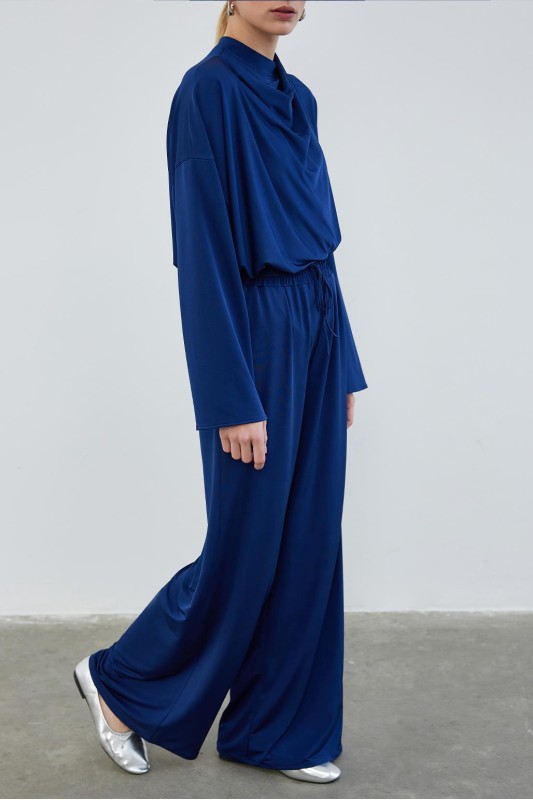 İpek Örme Extra Bol Pantolon Lacivert