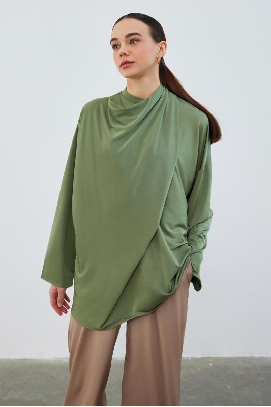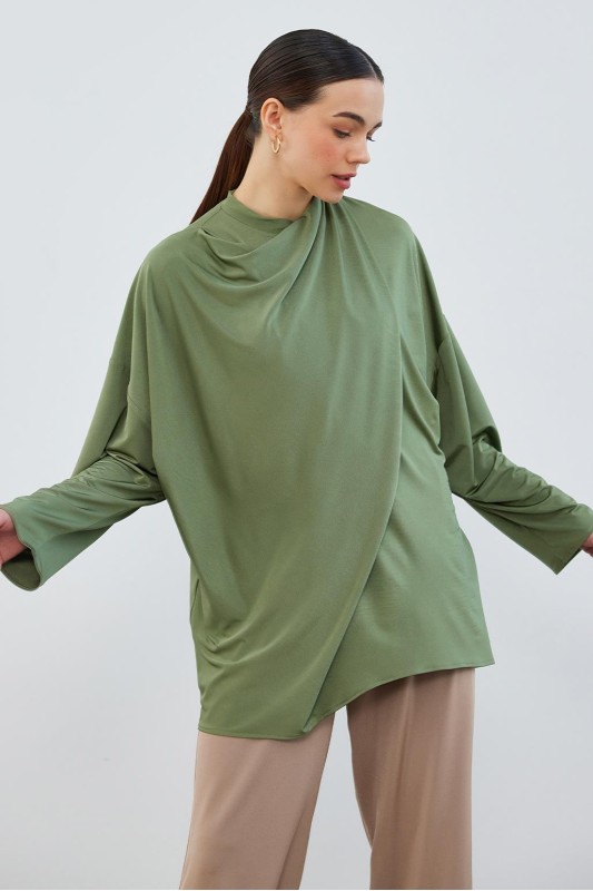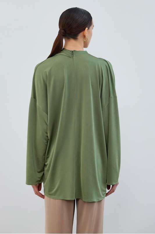 İpek Örme Relax Tunik Haki Yeşil