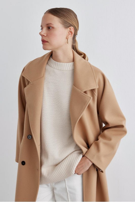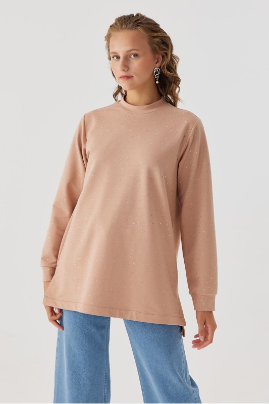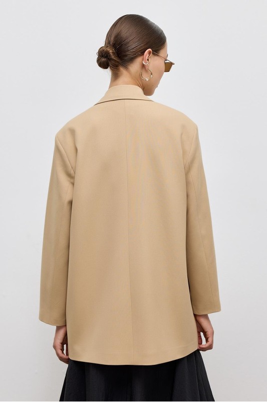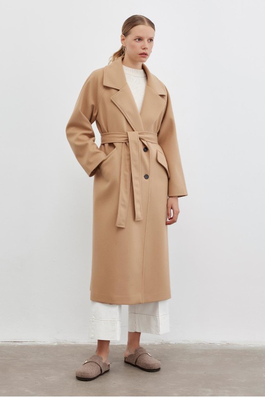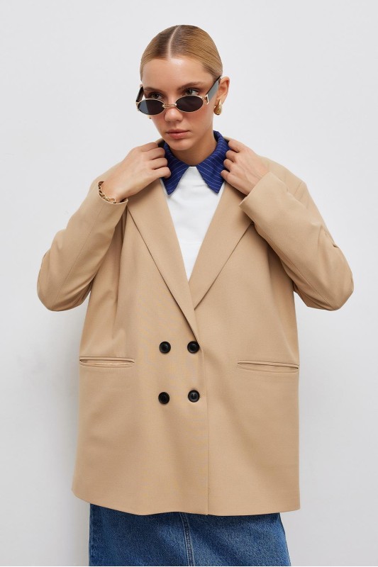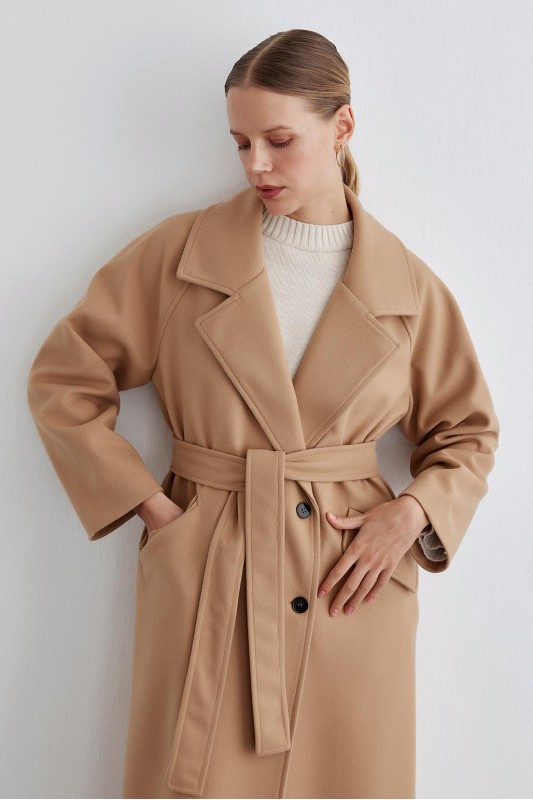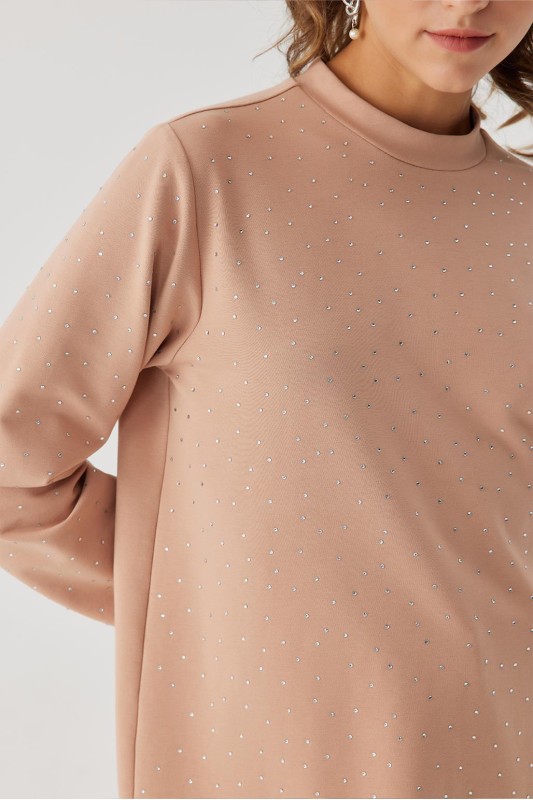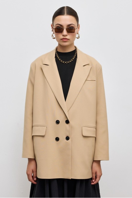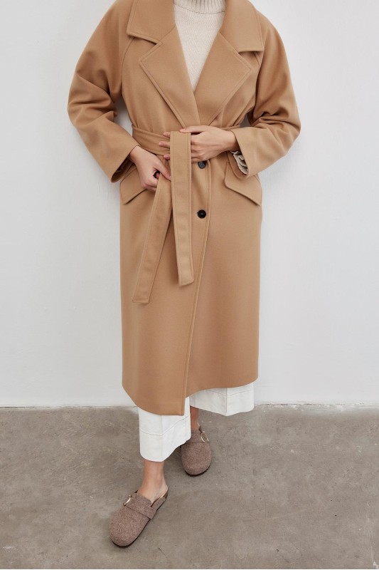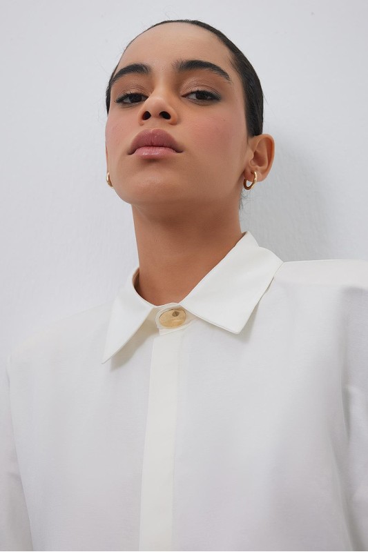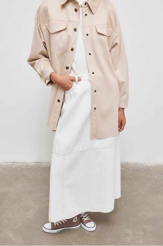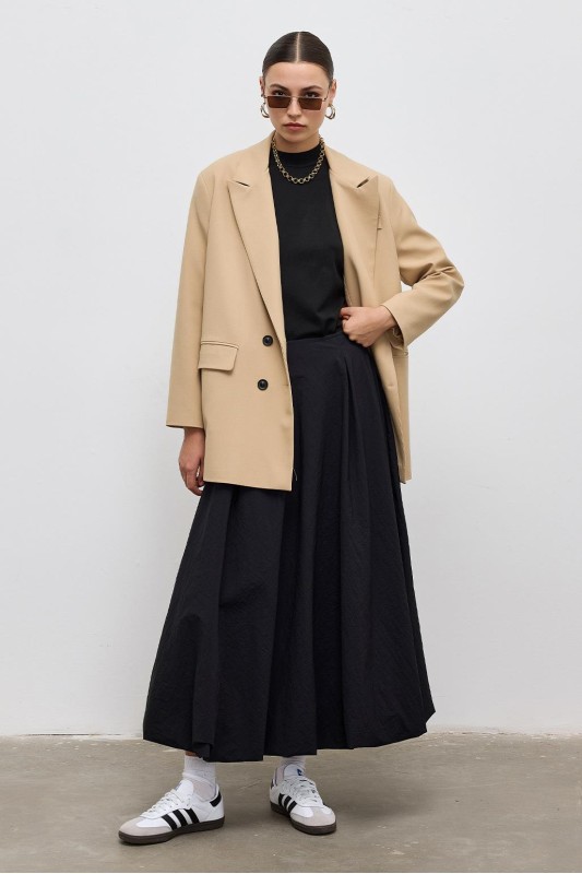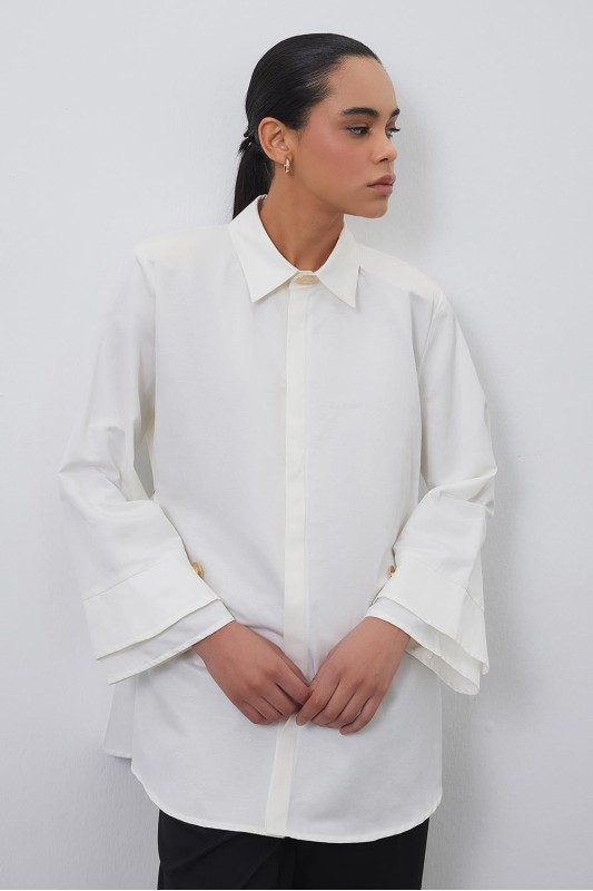 Kol Büzgülü Gold Detay Kap Abaya Ekru