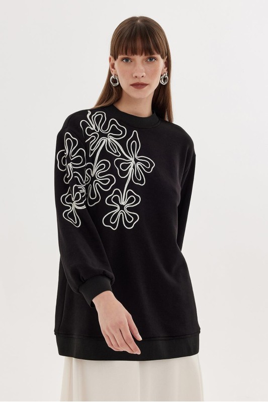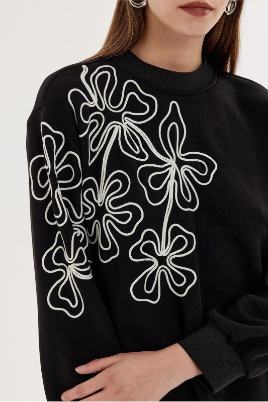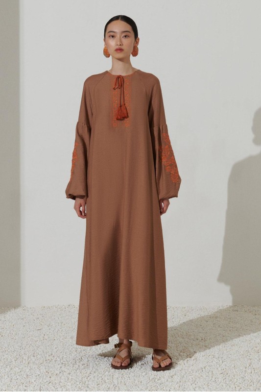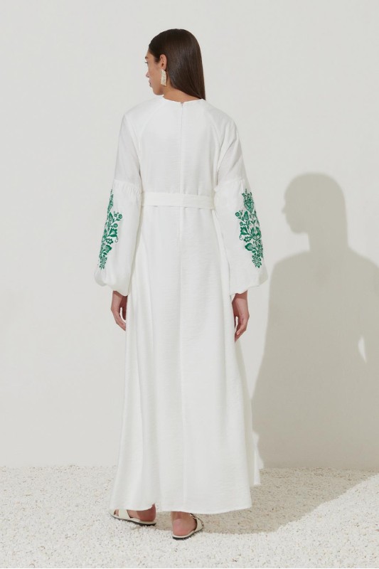 Kol Yaka Nakış Detaylı Elbise Ekru