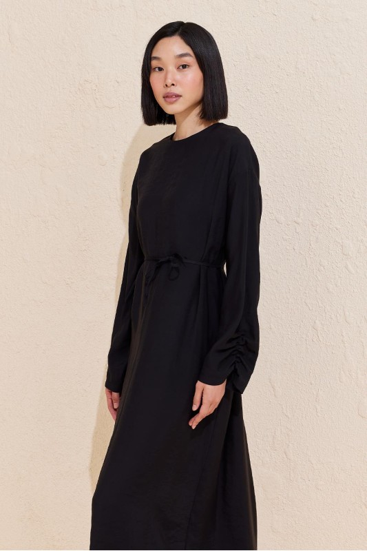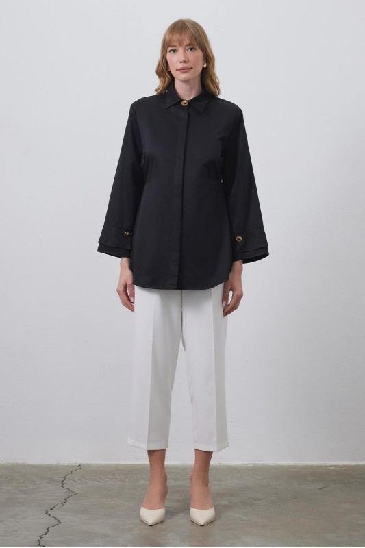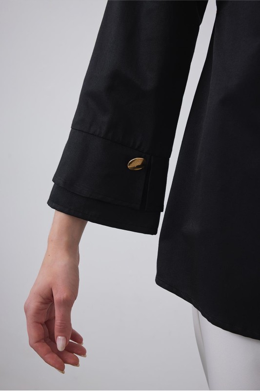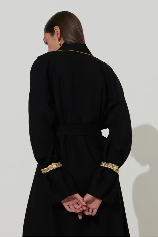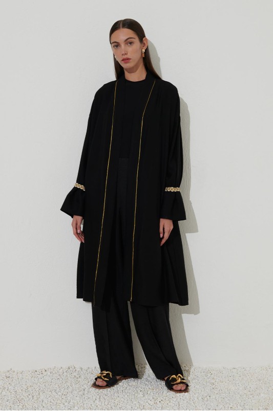 Kol Büzgülü Gold Detay Kap Abaya Siyah
