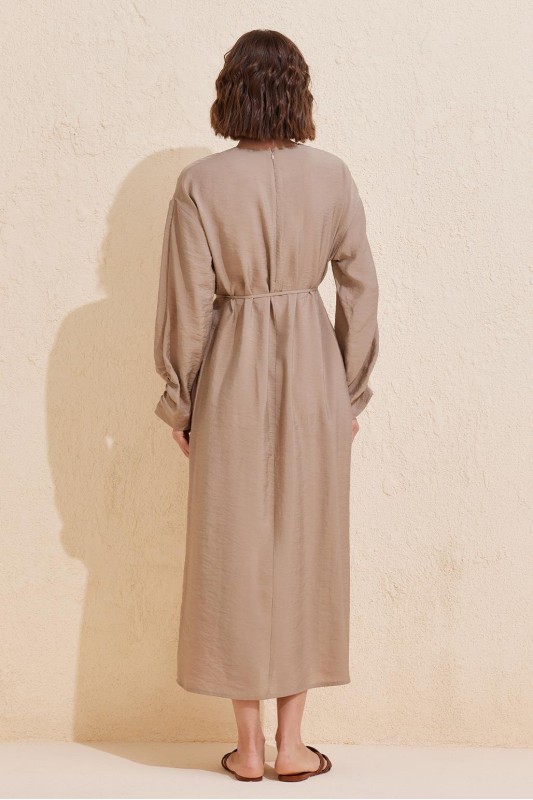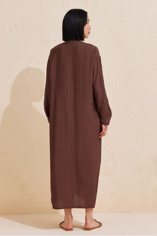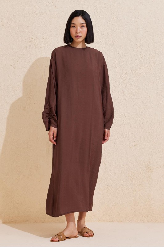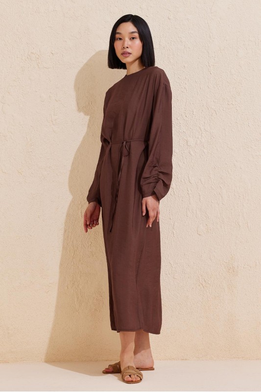 Kol Detaylı Modal Elbise Çikolata Kahve
