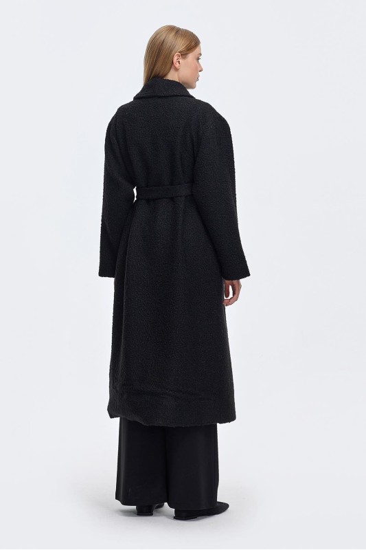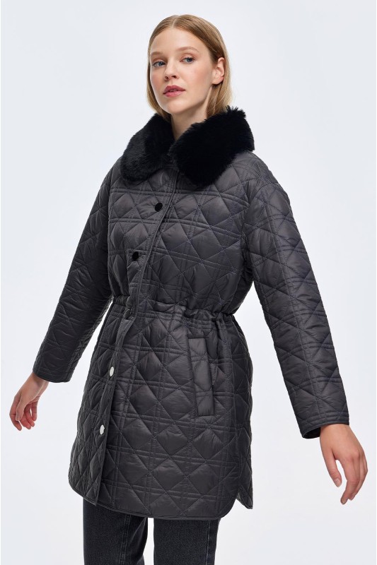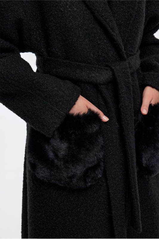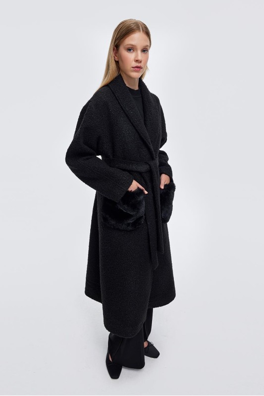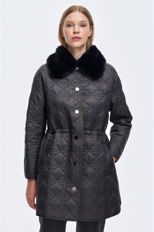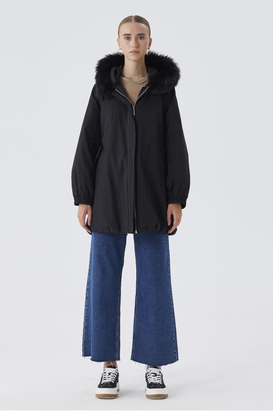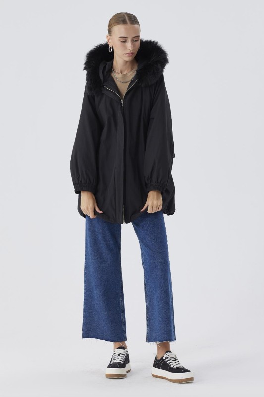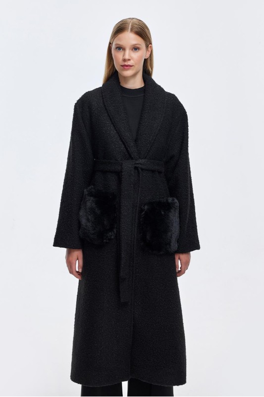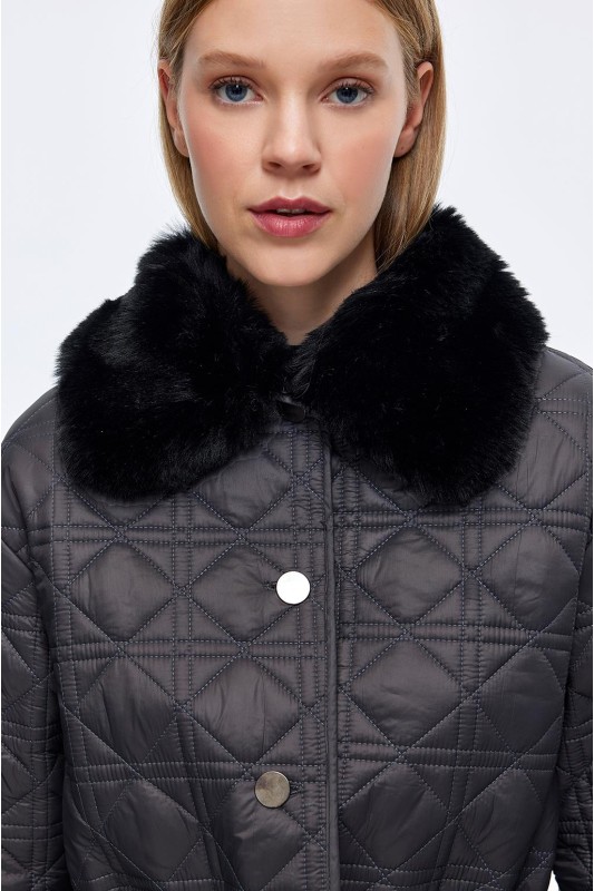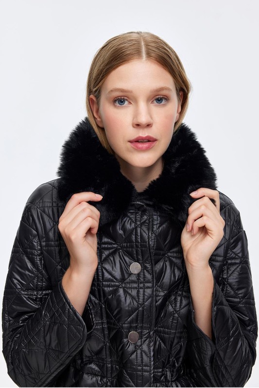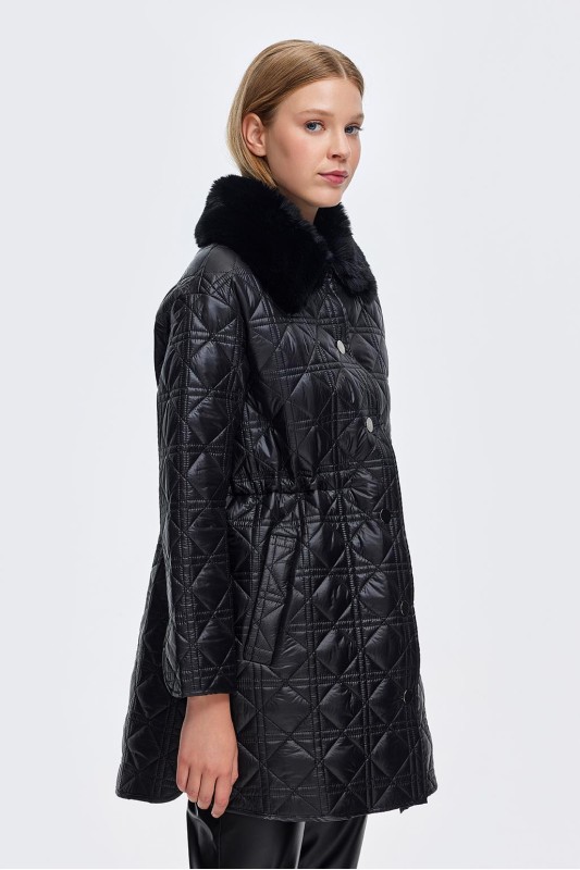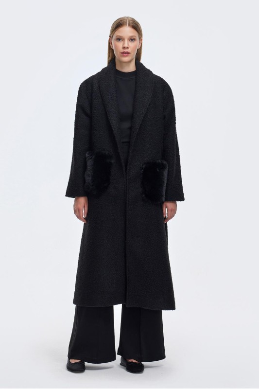 Kürk Yaka Kapitöne Kaban Siyah