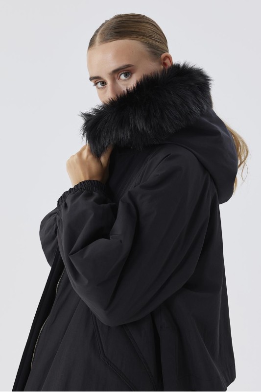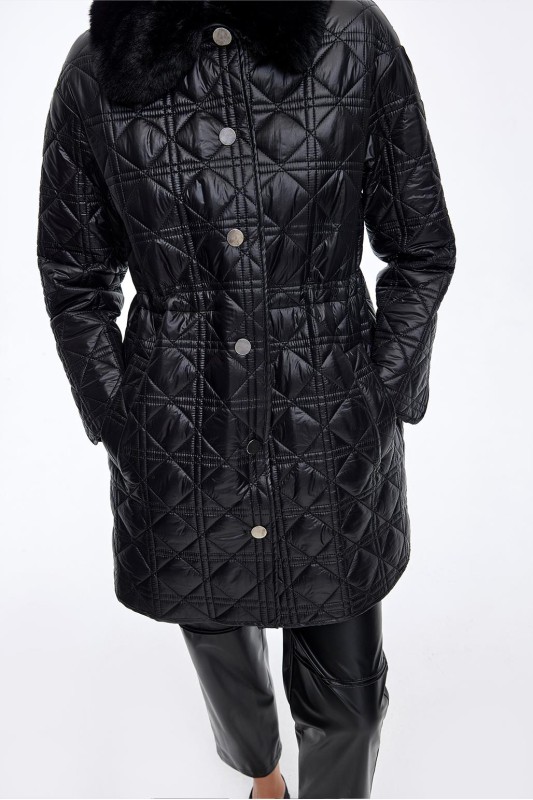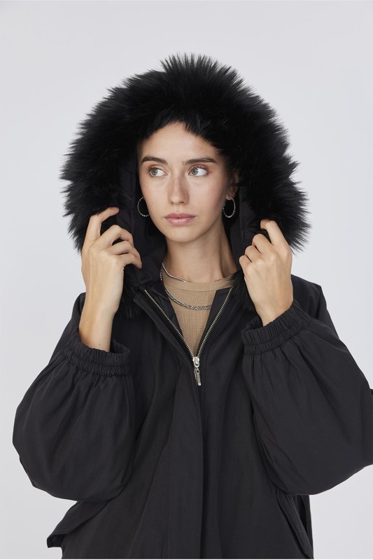 Kürk Yakalı Kapitöne Mont Siyah