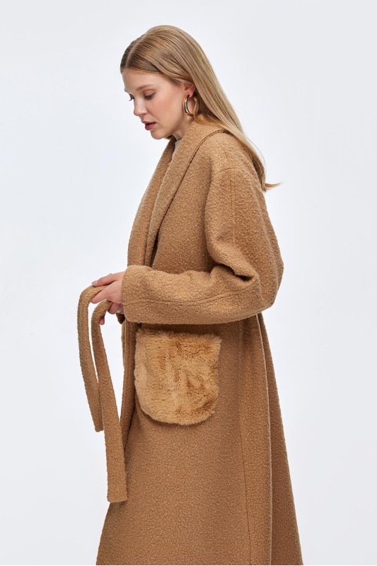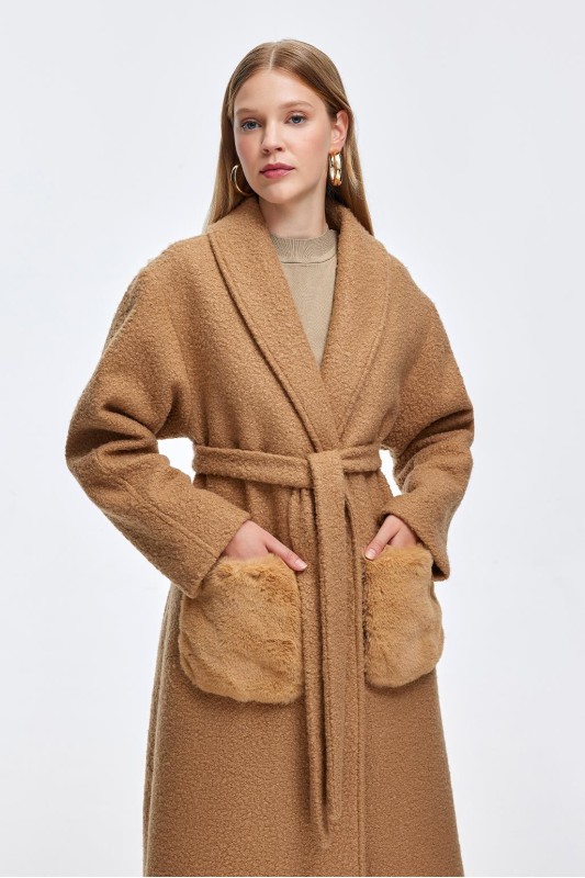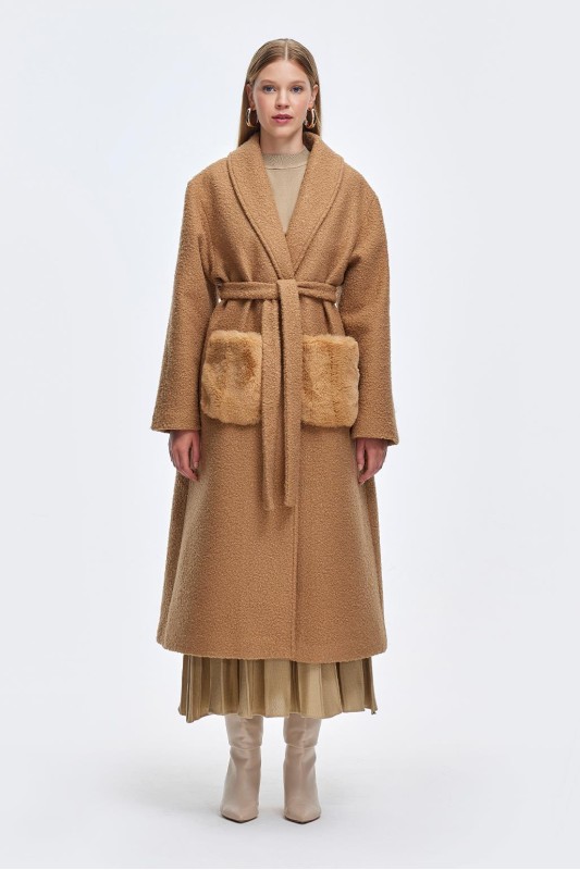 Kürk Cepli Buklet Kaban Camel