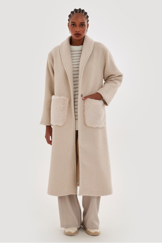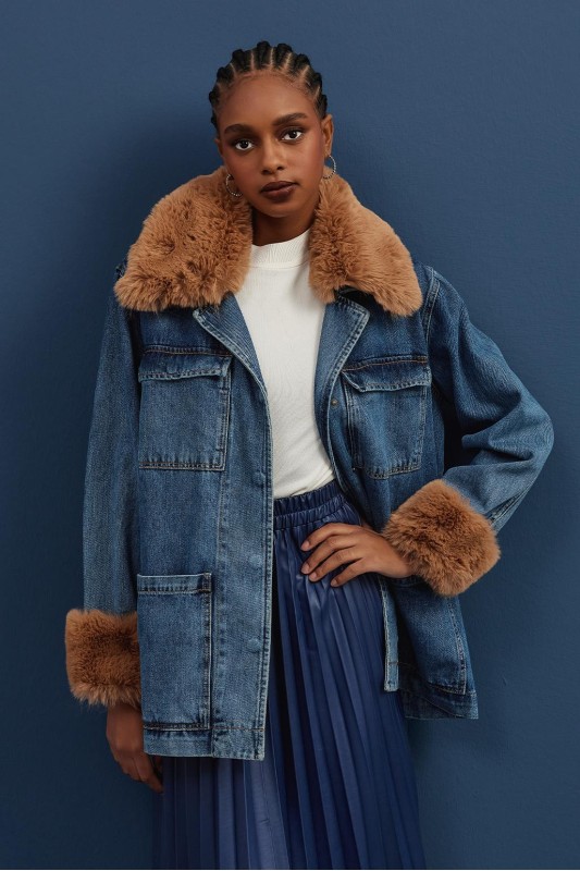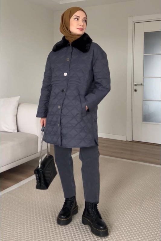 Kürklü Ceket Orta Mavi
