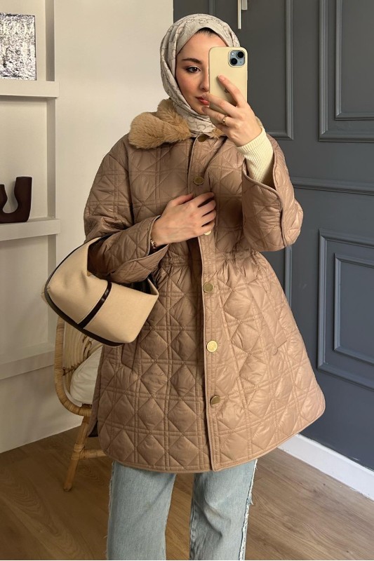 Kürk Yakalı Kapitöne Mont Füme