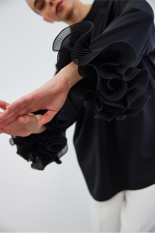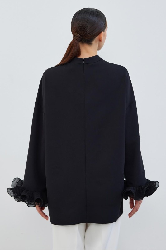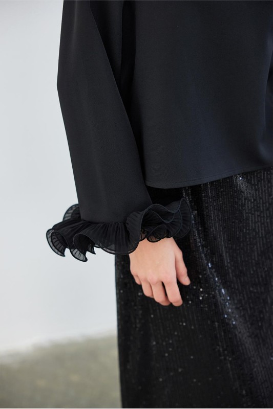 Lady Kol Pilise Detaylı Bluz Siyah