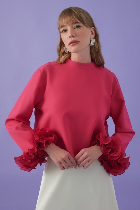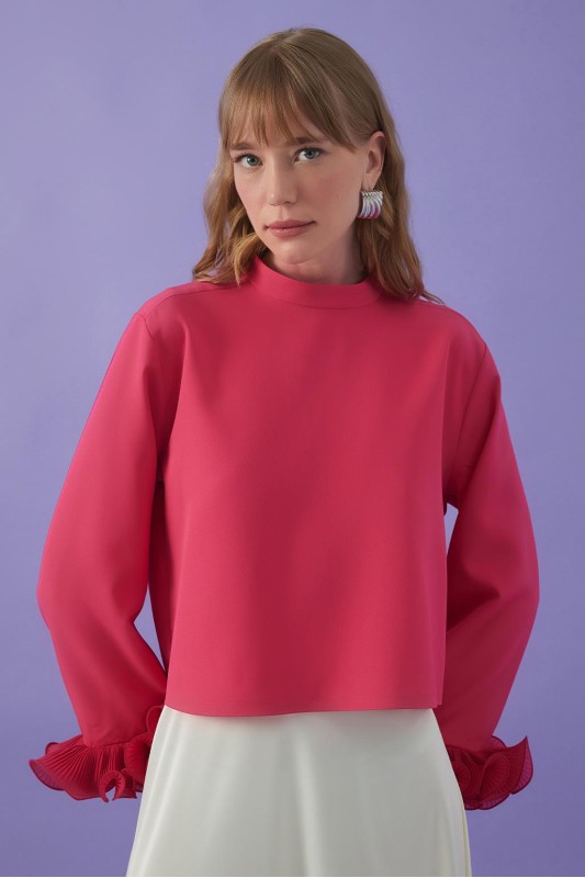 Lady Kol Pilise Detaylı Bluz Pembe
