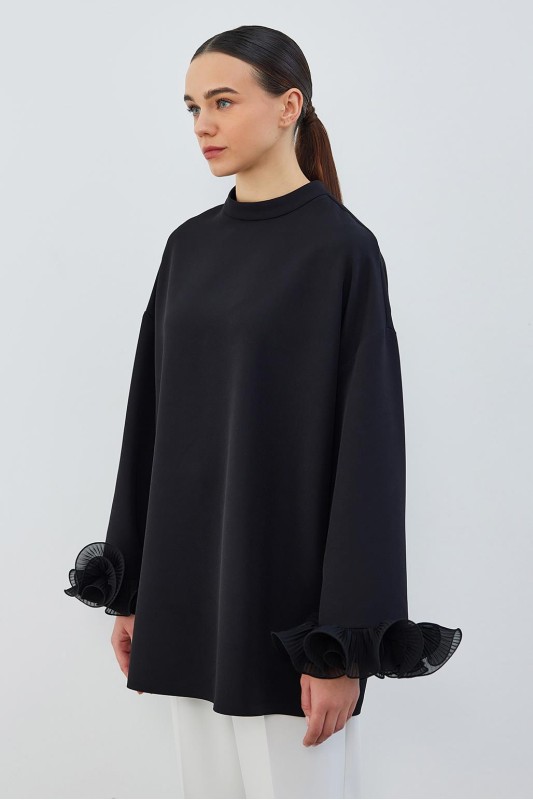 Lady Kol Pilise Detaylı Tunik Siyah