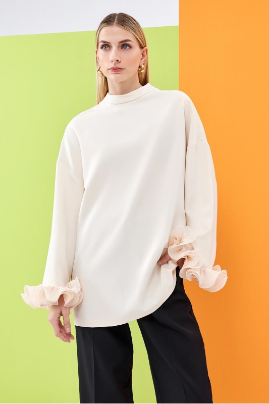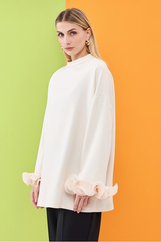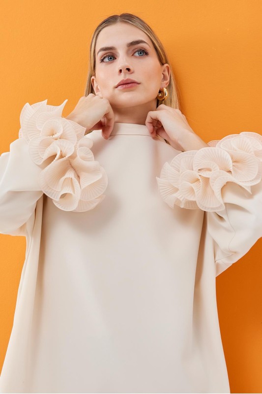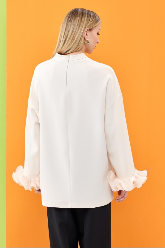 Lady Kol Pilise Detaylı Bluz Ekru