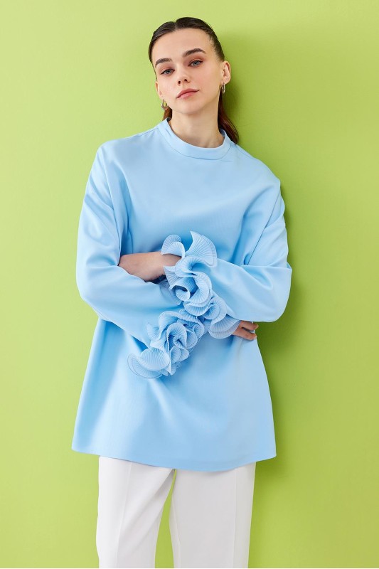 Lady Kol Pilise Detaylı Tunik Bulut Mavi