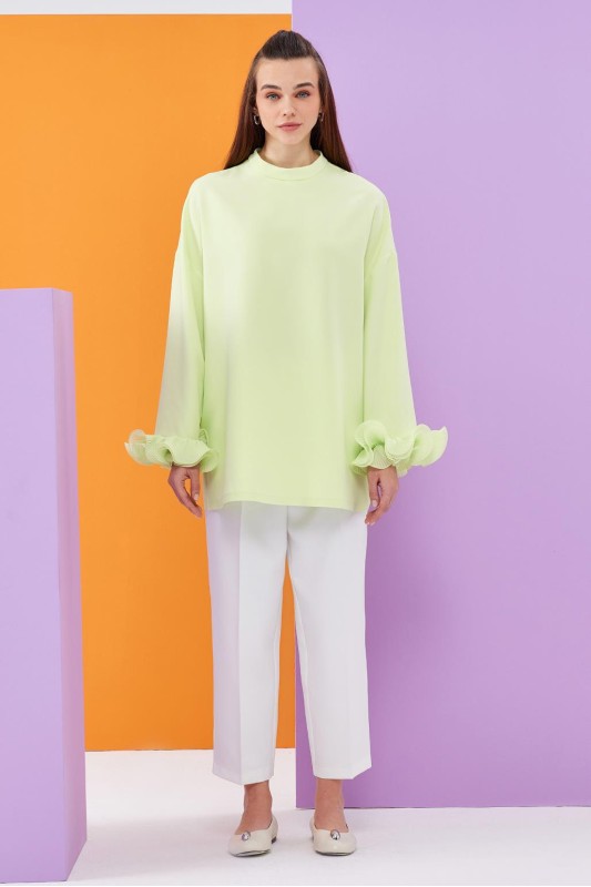 Lady Kol Pilise Detaylı Tunik Asit Yeşili