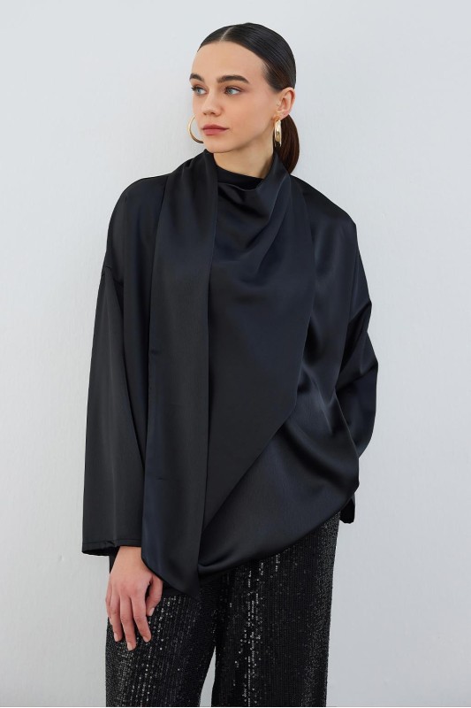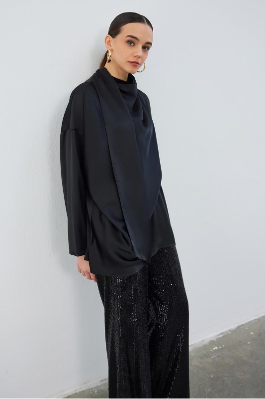 Kuva Saten Fularlı Tunik Siyah