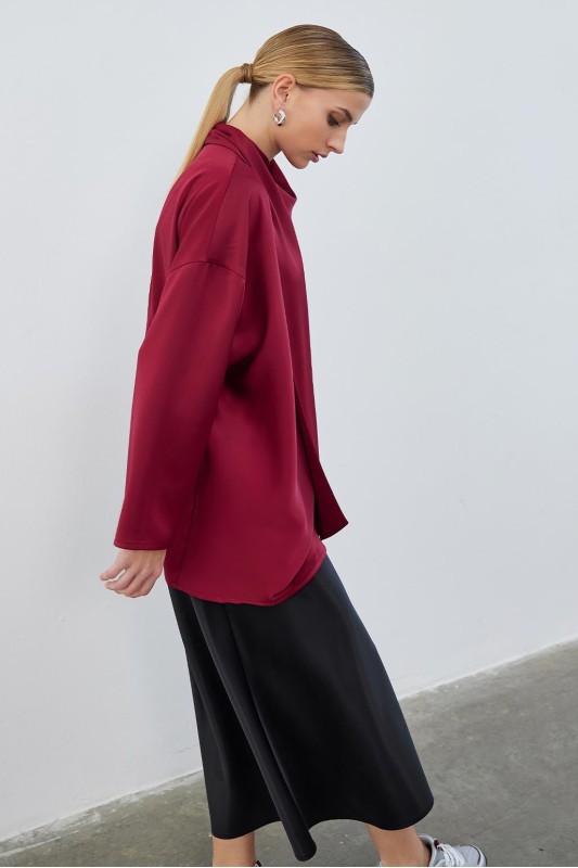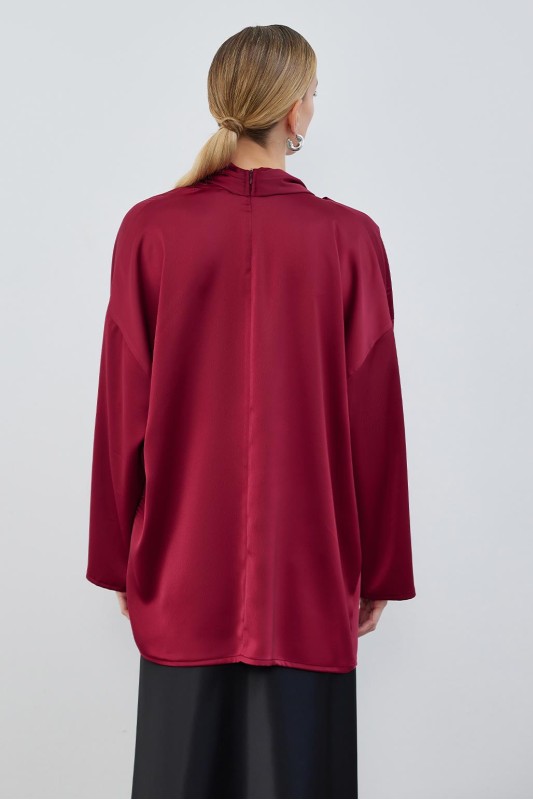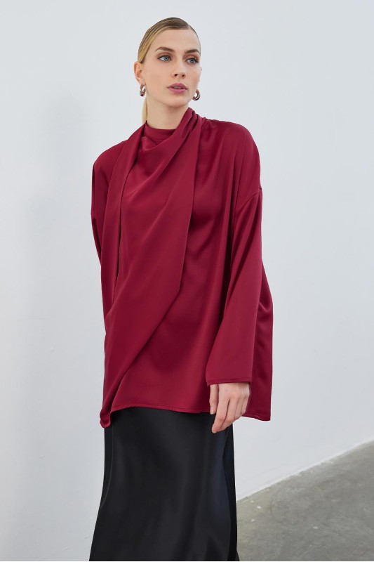 Kuva Saten Fularlı Tunik Bordo