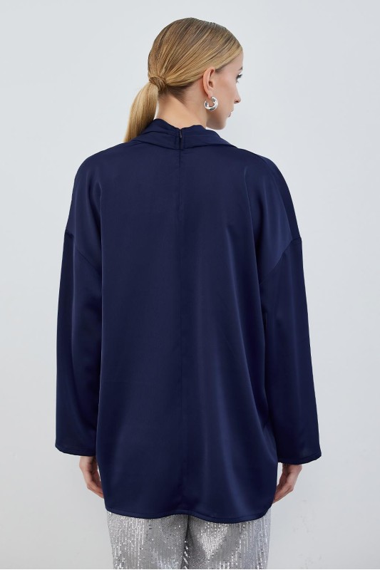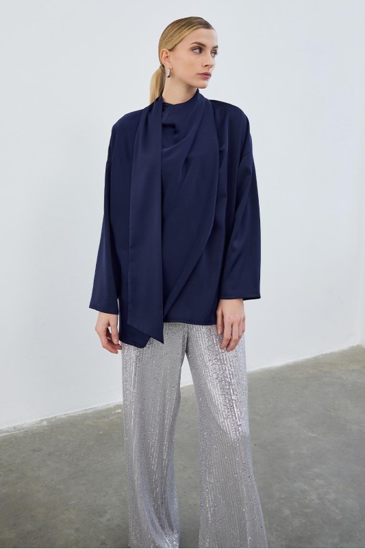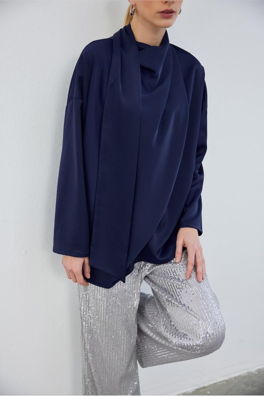 Kuva Saten Fularlı Tunik Lacivert