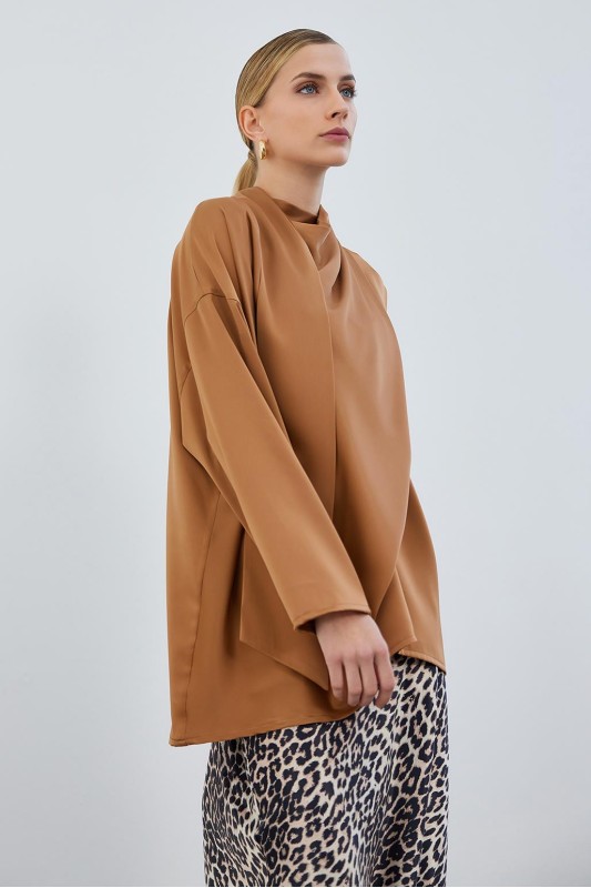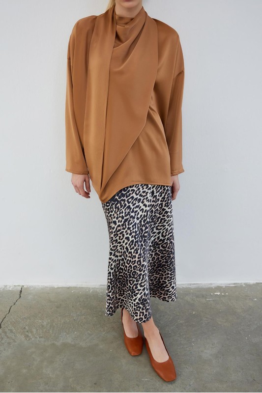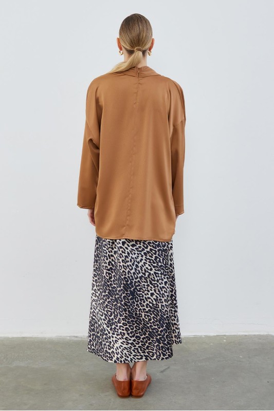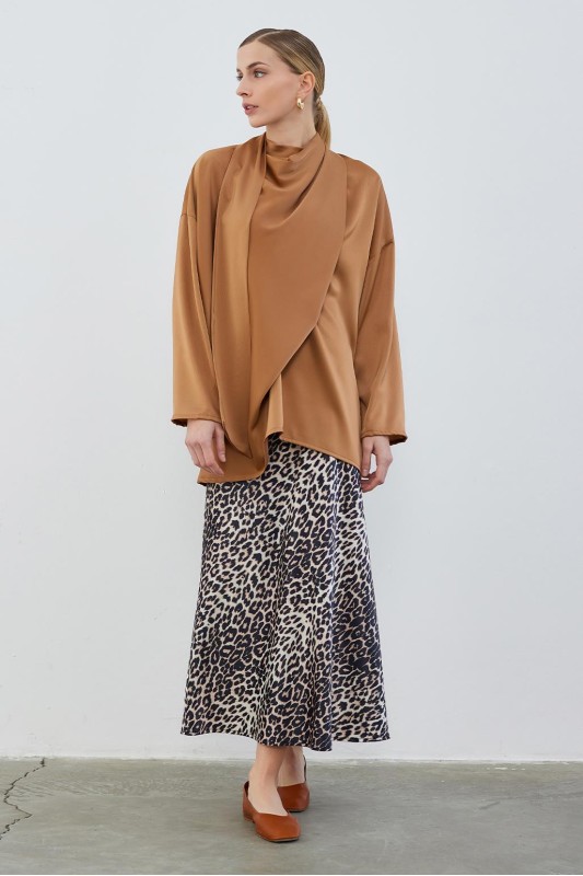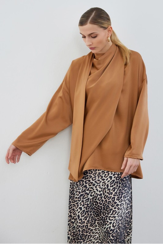 Kuva Saten Fularlı Tunik Cappuccino