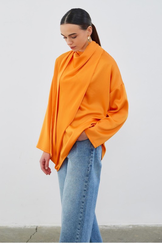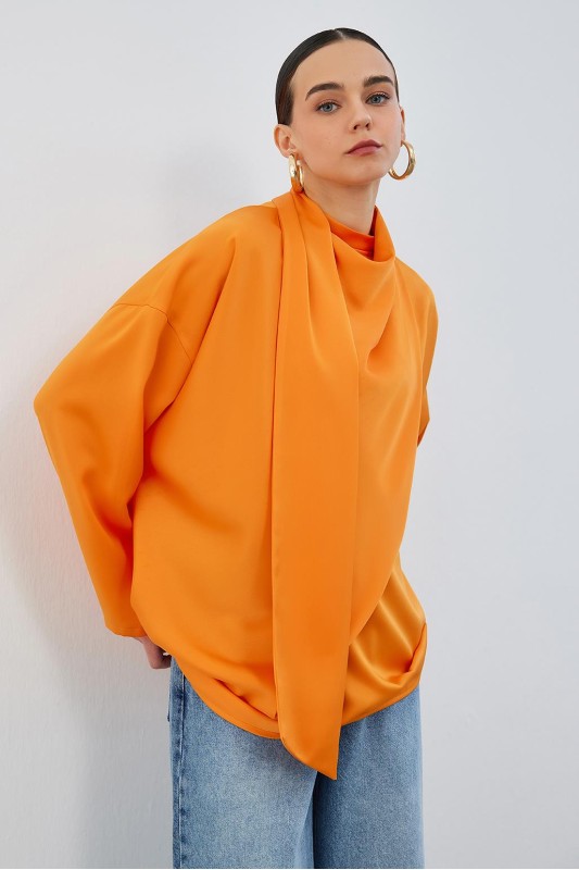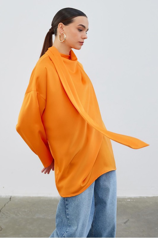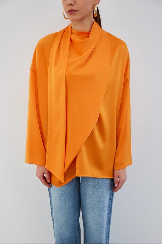 Kuva Saten Fularlı Tunik Apricot