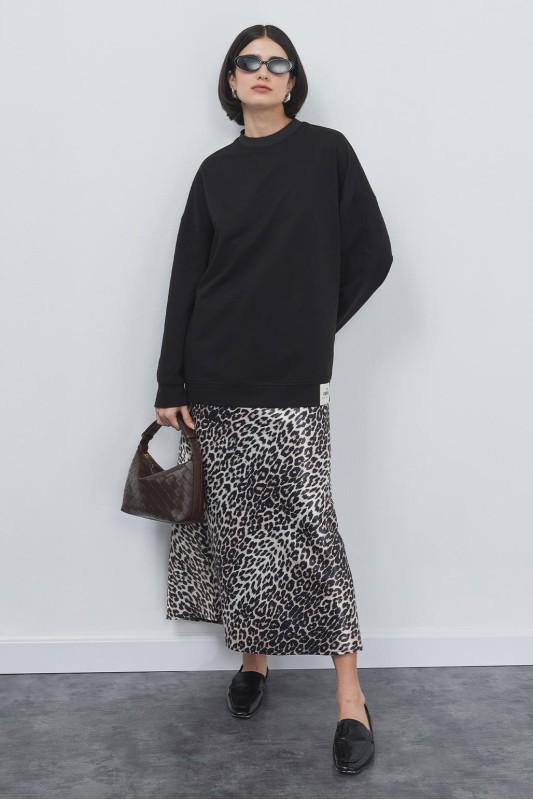 Leopar Desenli Düz Kesim Etek Desenli