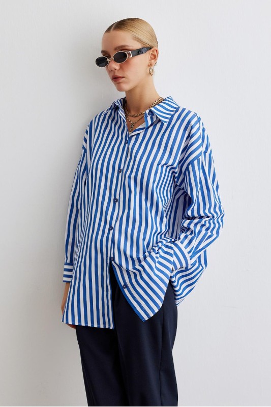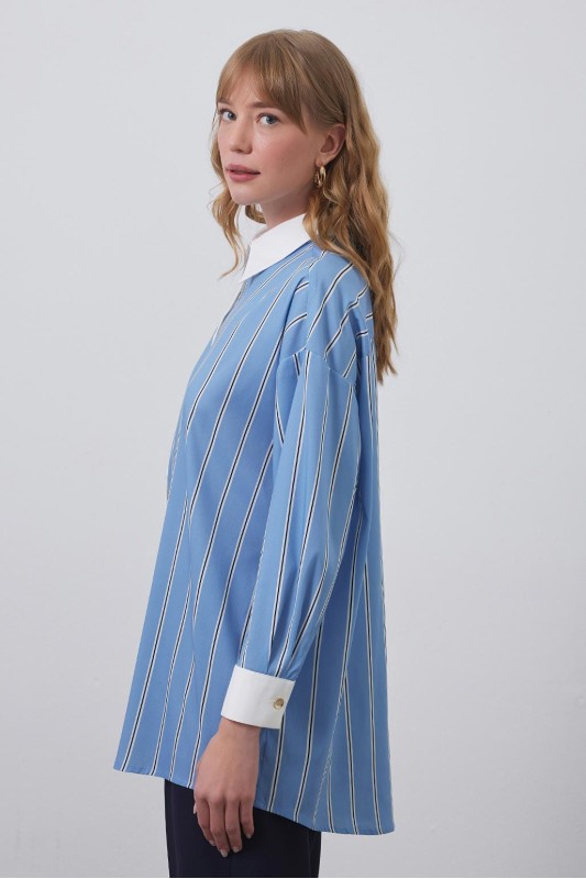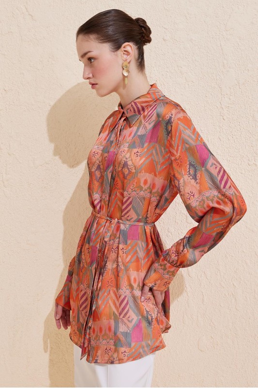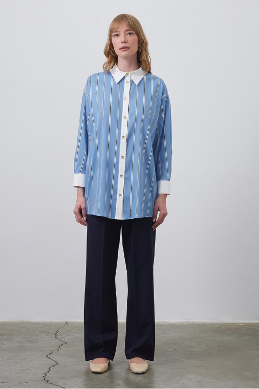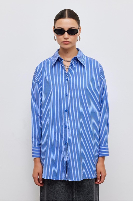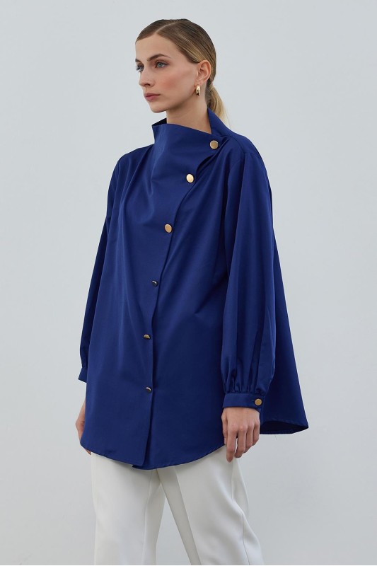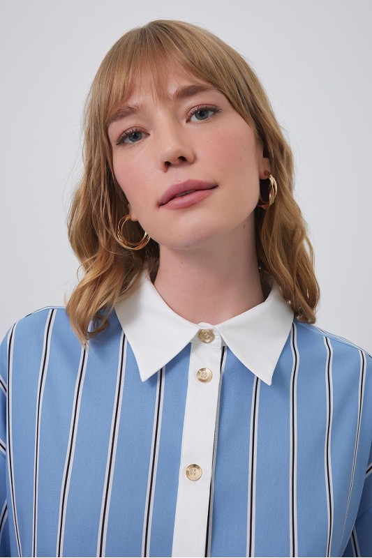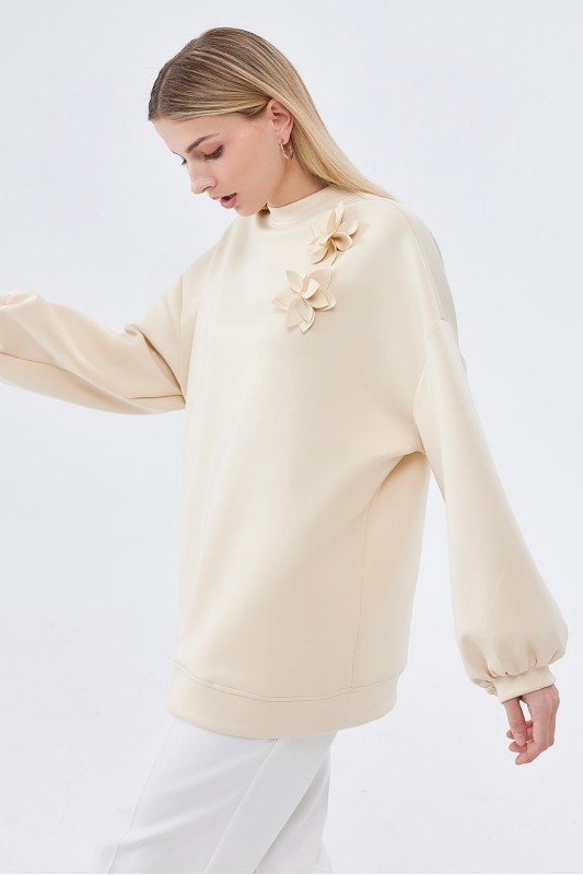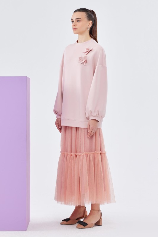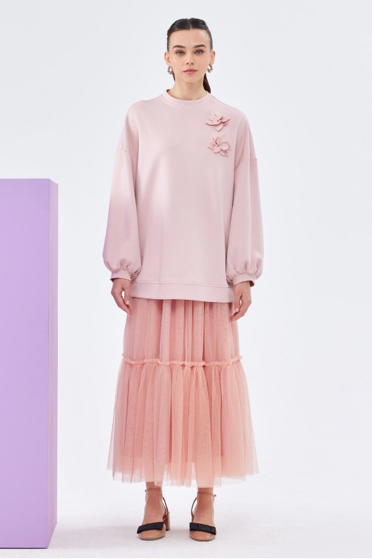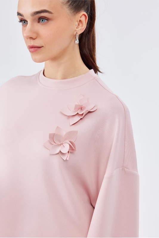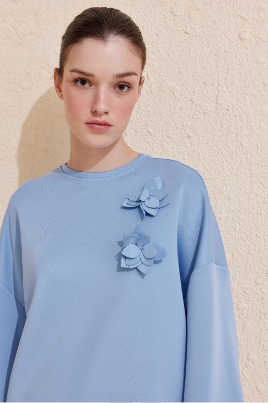 Mima Çiçek Aplikli Tunik Gök Mavi