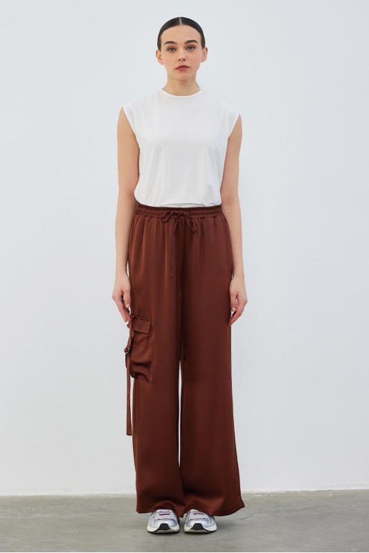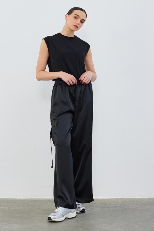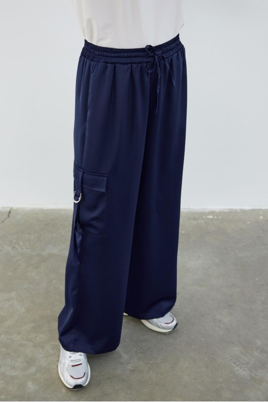 Milena Saten Kargo Cepli Pantolon Lacivert