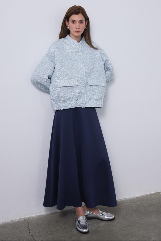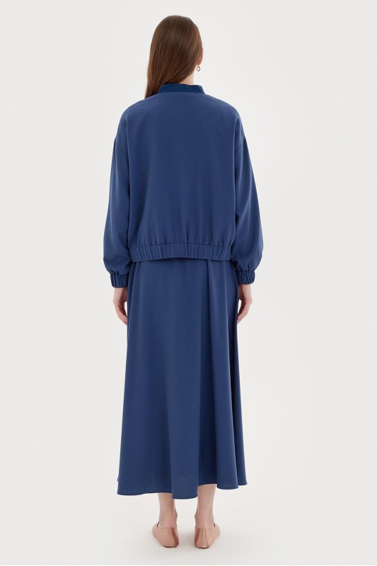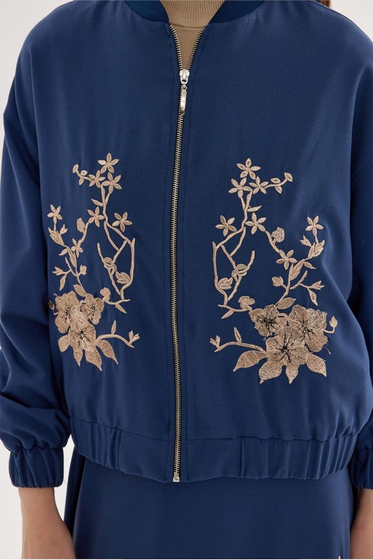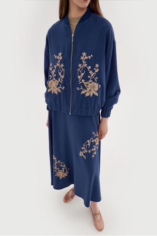 Nakış Detay Bomber Ceket-Etek Takım Gece Mavi
