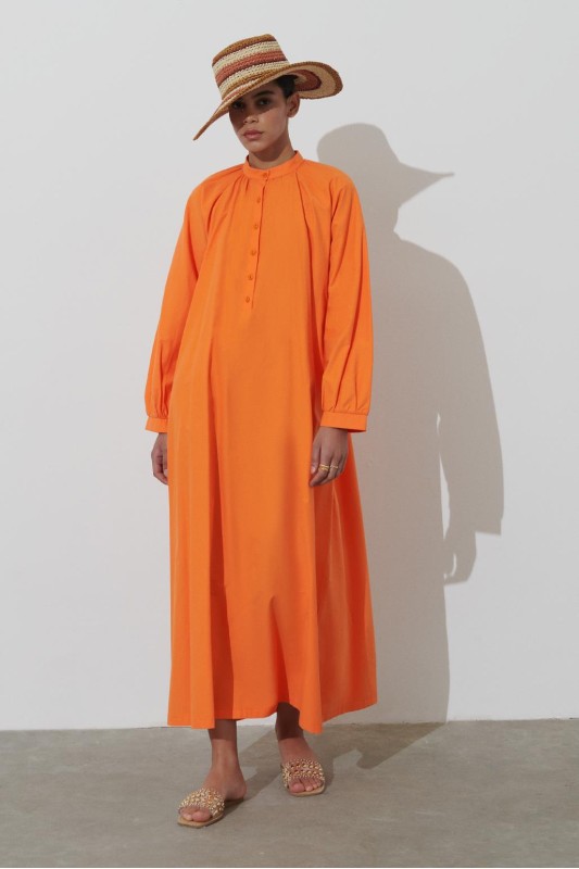 Renka Kuşaklı Elbise Turuncu