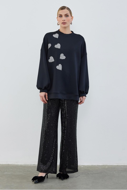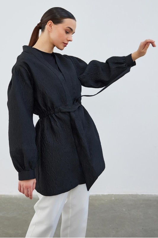Ritim İşlemeli Tunik Siyah