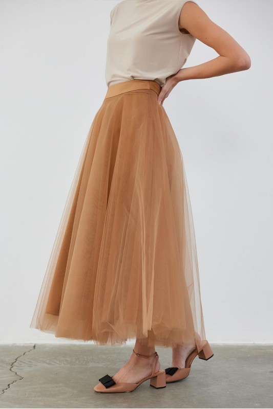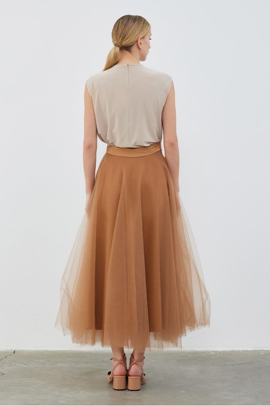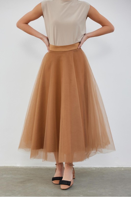 Royal Çok Katlı Tütü Etek Vizon