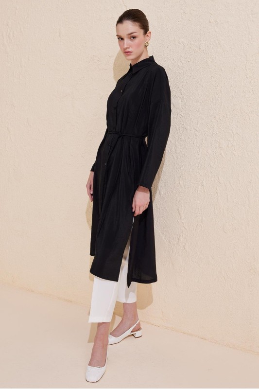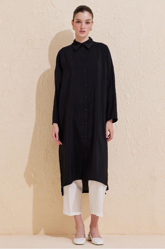 Rosa Uzun Yırtmaçlı Gömlek Siyah
