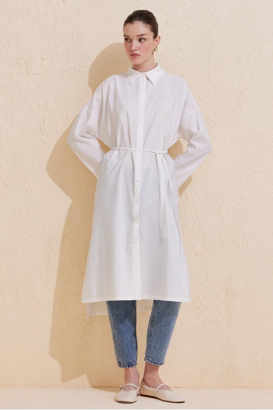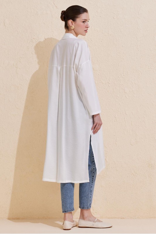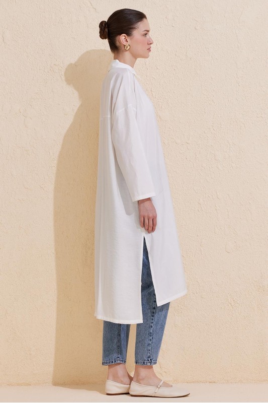 Rosa Uzun Yırtmaçlı Gömlek Ekru
