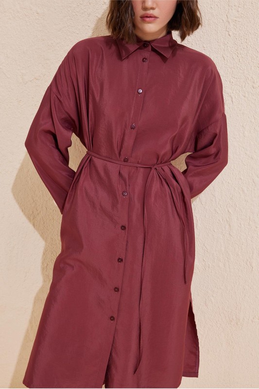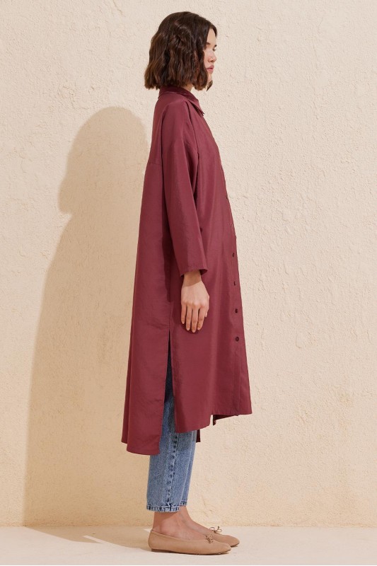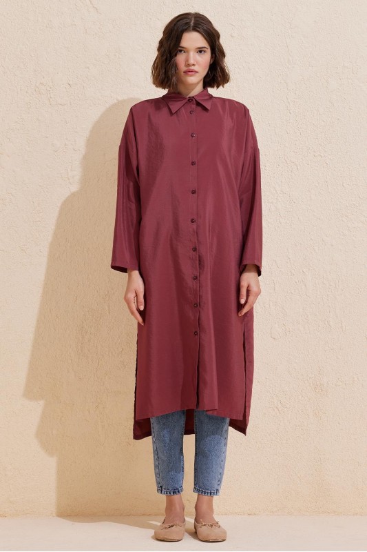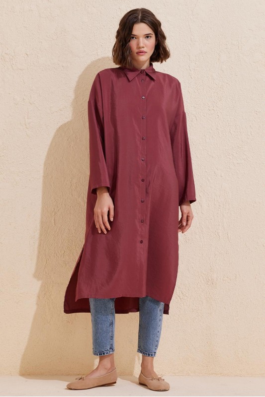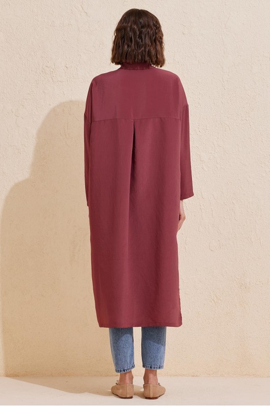 Rosa Uzun Yırtmaçlı Gömlek Bordo
