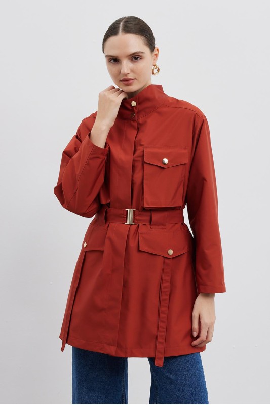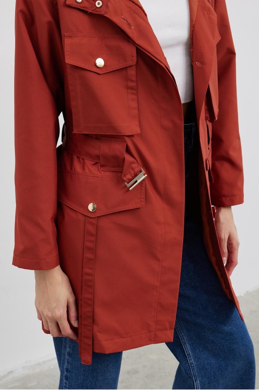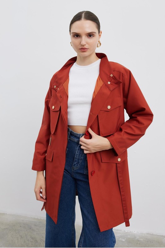 Volen Çıtçıtlı Trençkot Kiremit