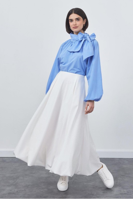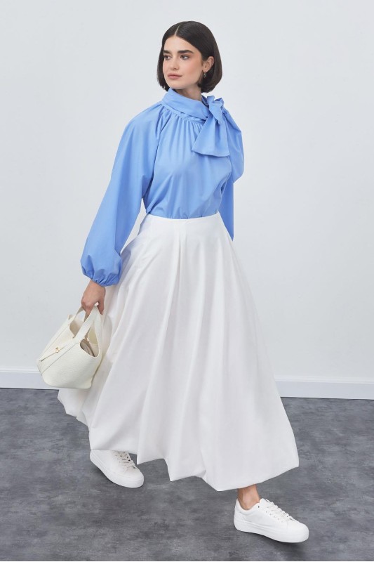 Wola Poplin Balon Etek Kot Mavi