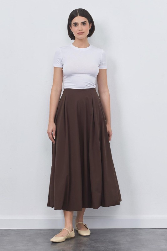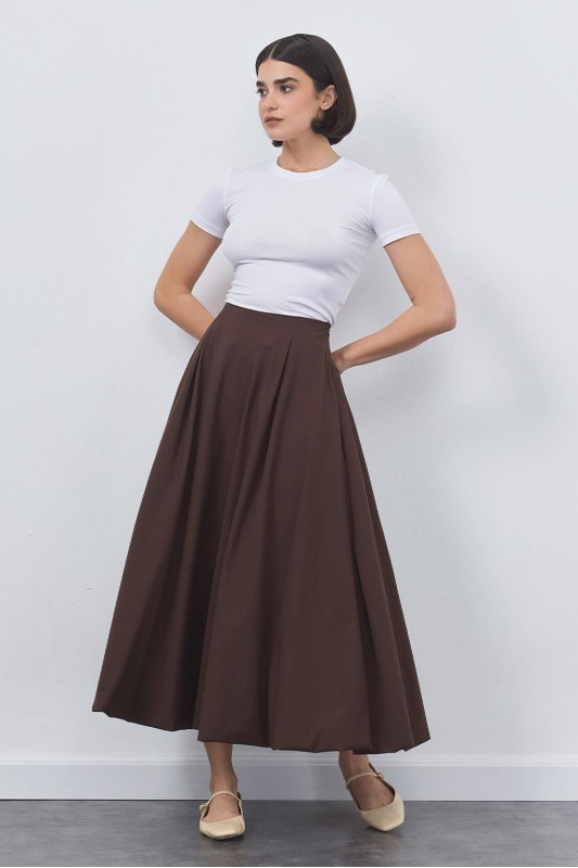 Wola Poplin Balon Etek Çikolata Kahve