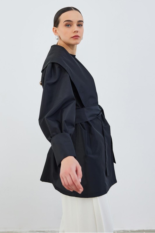 Vera Tafta Şal Yaka Kap Siyah