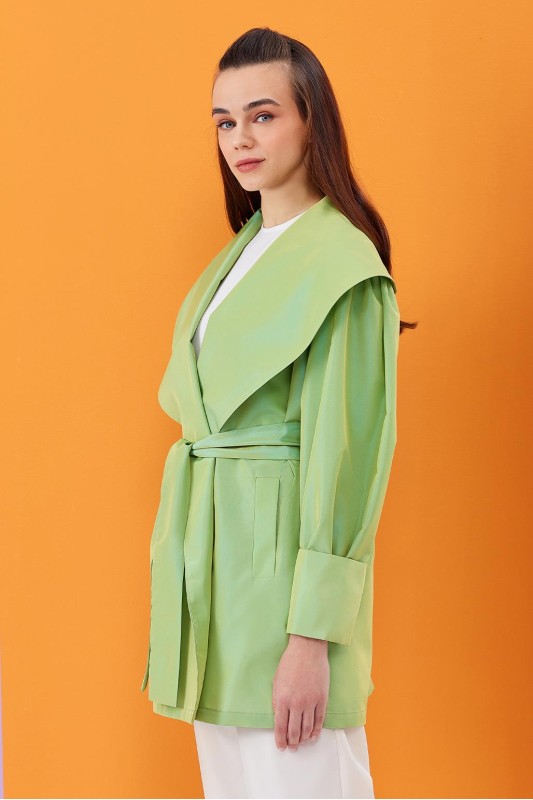 Vera Tafta Şal Yaka Kap Su Yeşili